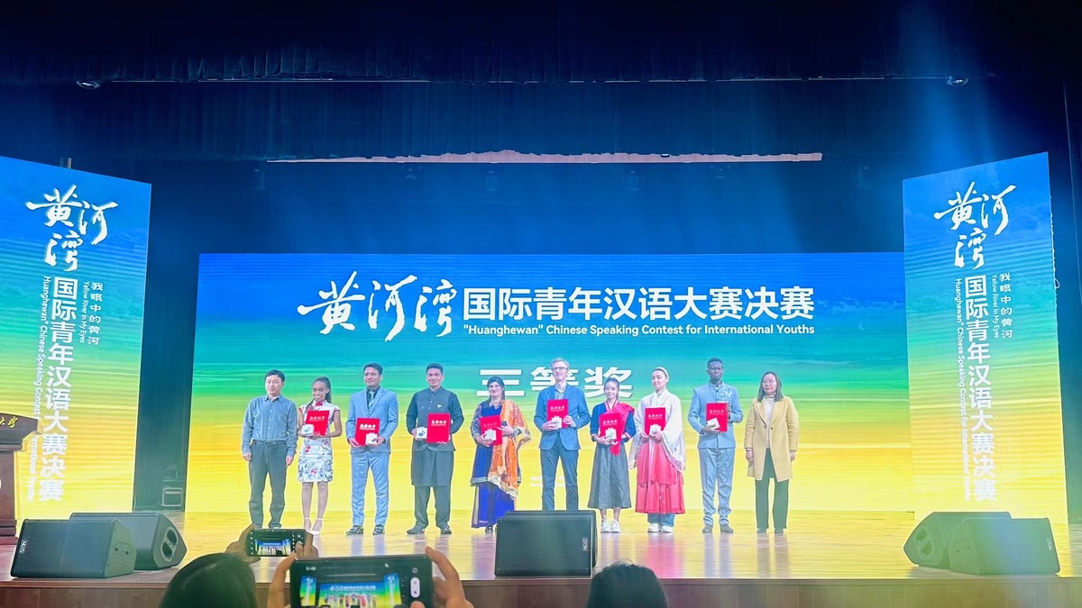 Haroon Ali Kabeer (fourth from left) attends the "Huanghewan" Chinese Speaking Contest for International Youths in Qufu, Shandong province, on March 24. [Photo provided to chinadaily.com.cn]